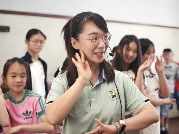 在教学实践中,李丽娟聚焦黄梅戏的声腔韵律与表演表达,通过分句讲唱、情境示范、互动排练等多种方式,使孩子们在潜移默化中理解并掌握戏曲的节奏美与神韵美。