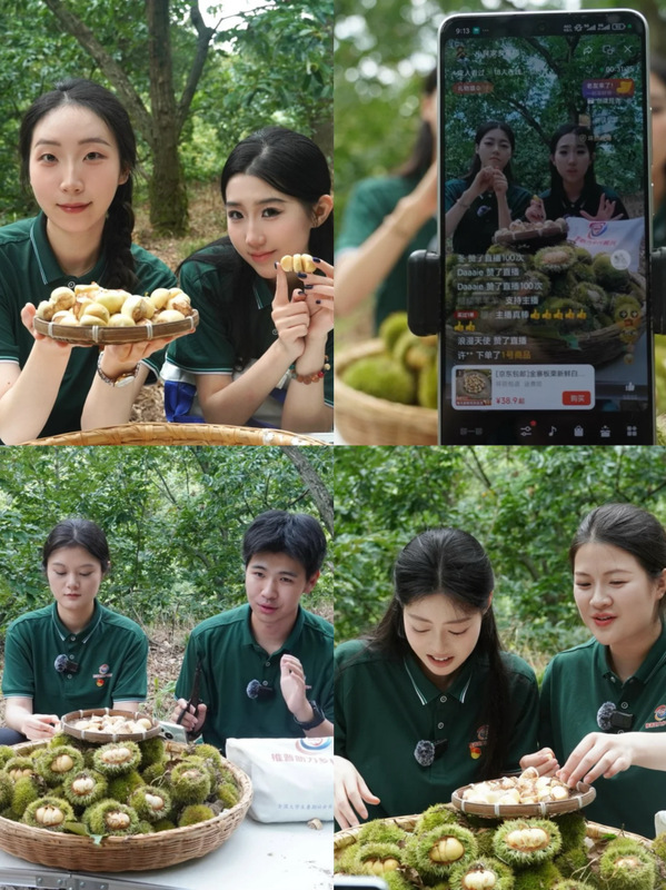 随后,队员们轮番上阵,各展所长。有的手持板栗讲解品种特性:“咱们这个板栗生吃脆甜多汁,像水果一样清爽,煮熟后粉糯香甜,不管是炖汤、糖炒还是做菜,都是绝佳食材”;有的现场演示剥板栗技巧,一边操作一边用清晰的语言讲解步骤;还有的邀请当地农户出镜,在队员的引导下,用朴实的方言搭配普通话,讲述板栗种植的辛劳与收获的喜悦。直播间里“怎么购买”“产地直发吗”的提问不断刷屏,订单量随着讲解的深入持续攀升。