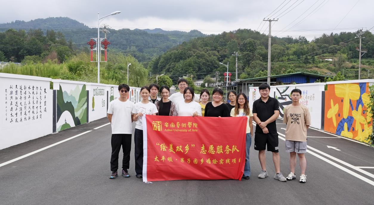 八月底的金寨县果子园乡,绿意盎然,稻浪轻涌。8月27日傍晚,一支年轻的团队带着画笔和颜料走进了这个宁静的乡村——安徽艺术学院美术学院“绘美双乡”志愿服务队师生一行12人抵达这里,在新学期开学前开启了为期三天的艺术赋能乡村振兴实践活动。