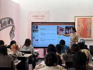 近日,安徽艺术学院戏剧学院黄梅戏与戏剧影视美术设计专业师生走进安徽省美术馆,开展了一场别开生面的教学实践展示活动。作为“黄梅戏主题美术作品展”的延伸与互动环节,学生们在展厅中现场将黄梅戏与戏剧影视美术设计教学课堂搬进美术馆,让艺术教学与公共展览深度融合。
