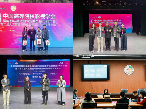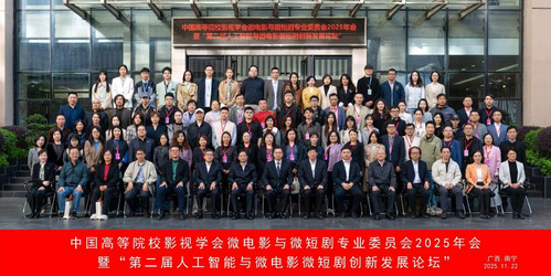 近日,戏剧学院副院长杨超、学生管理办公室副主任孔晓欣、表演教研室党支部副书记常昕及青年教师张诗扬受邀赴桂,参加由广西艺术学院与中国高等院校影视学会微电影与微短剧专业委员会联合主办的2025年年会暨“第二届人工智能与微电影微短剧创新发展论坛”。