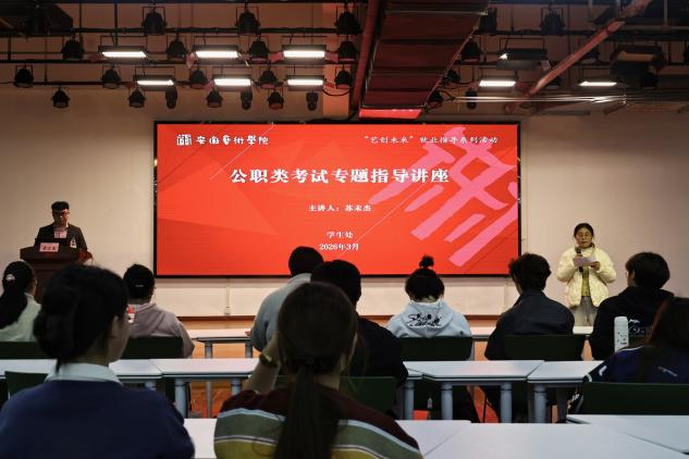 为助力我校学子精准把握公考方向、科学规划备考路径,提升应试能力与职业竞争力。3月25日,我校“艺创未来”就业创业指导系列讲座之公考专场培训顺利开展,活动分设公考指导讲座与座谈会两个环节,提供了分层分类、精准适配的职业发展指导服务。