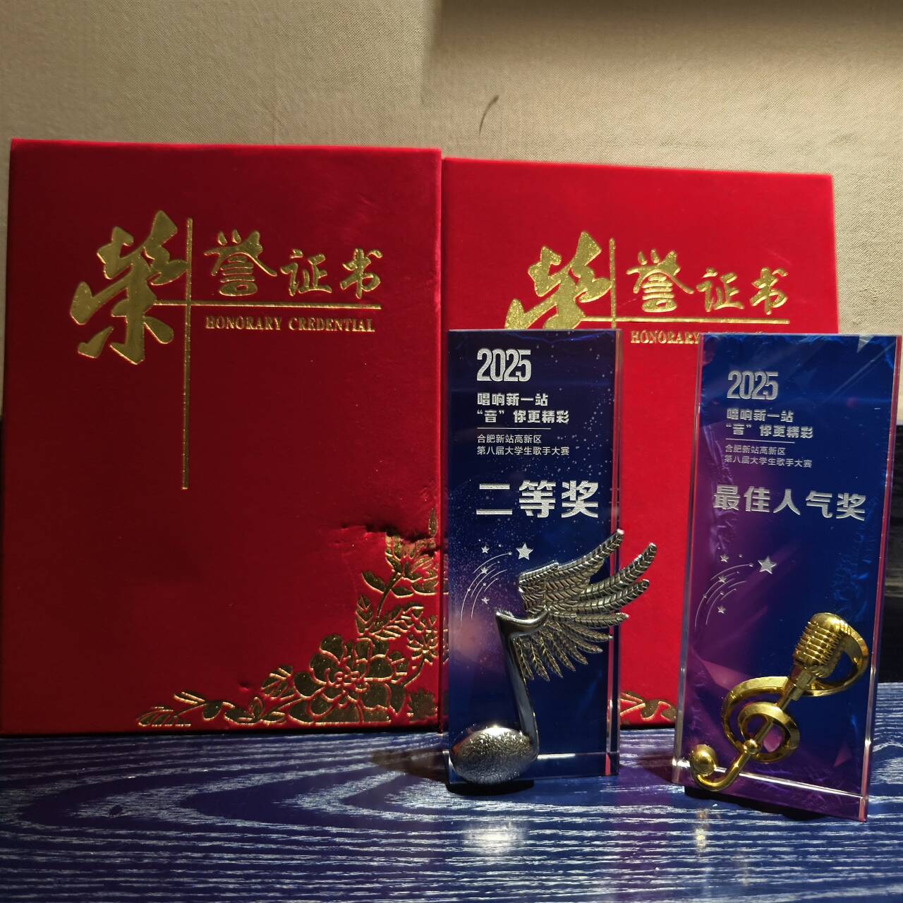 近日,合肥新站高新区第八届大学生歌手大赛总决赛圆满落幕。经过多轮激烈角逐,音乐学院2025级声乐一班刘力维同学发挥出色,最终荣获大赛亚军,并同时斩获大赛“最佳人气奖”,充分展现了我院学生扎实的专业基础和良好的舞台风采。