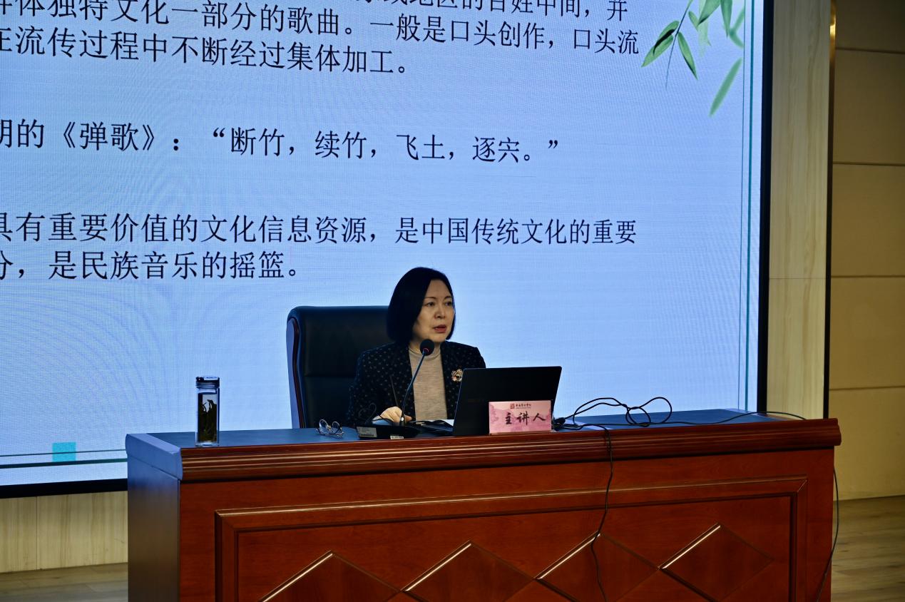 安徽民歌是徽文化的重要载体,蕴含着丰富的地域文化基因与人文精神。田雅丽教授结合研究团队长期田野调查获取的第一手资料,深入讲解了五河民歌、凤阳民歌、徽州民歌、大别山民歌等安徽代表性民歌的音乐特点,并且结合自身科研与教学实践,剖析安徽民歌的艺术价值,系统阐述传承与保护的思考。