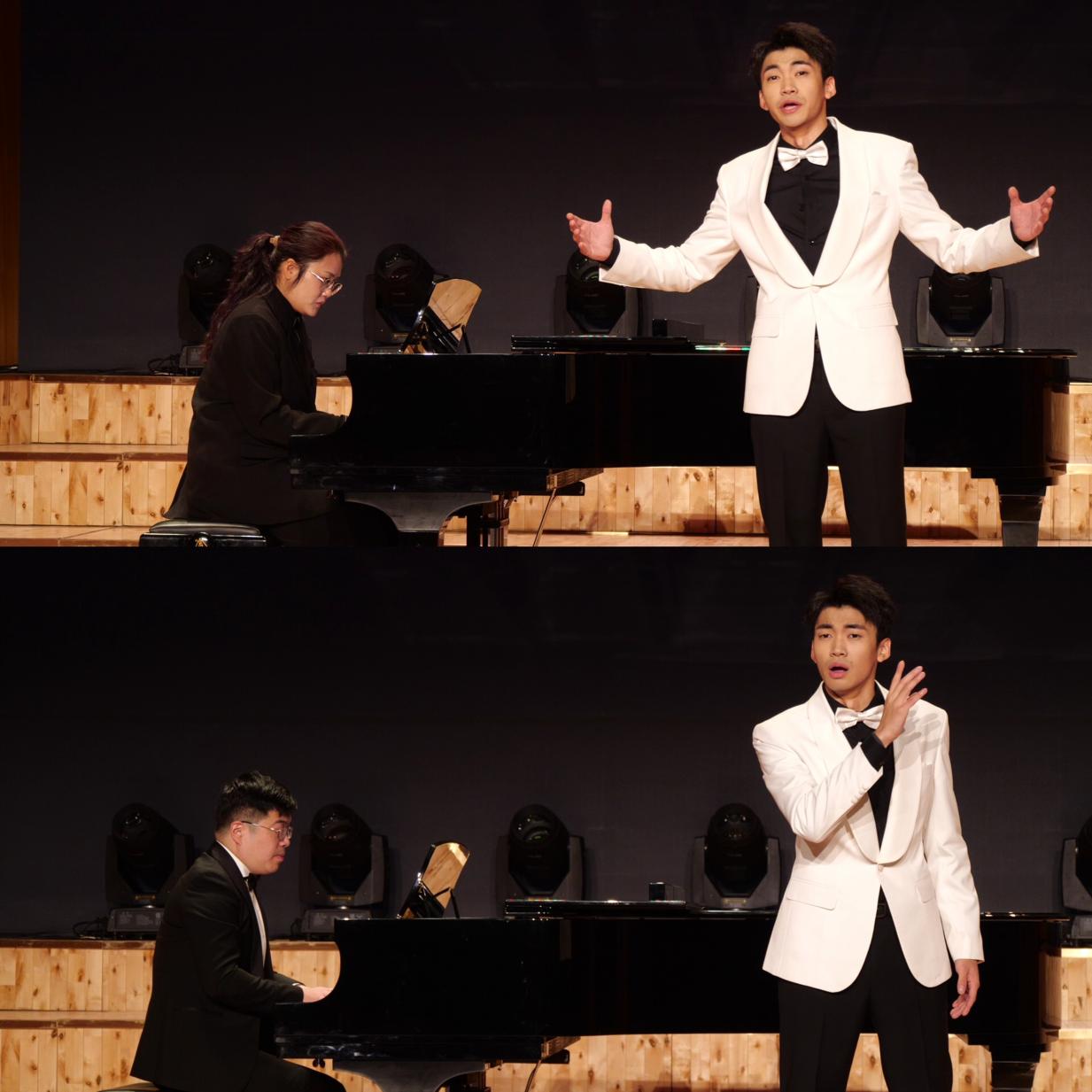 音乐会在朱子青同学优雅主持下,缓缓拉开了帷幕。黄梓翔凭借扎实的声乐功底和饱满的艺术表现力,为观众倾情呈现了14首风格迥异的经典之作。朱慧敏和俞斌老师分别担任上下半场钢琴艺术指导。