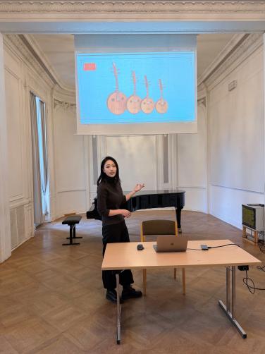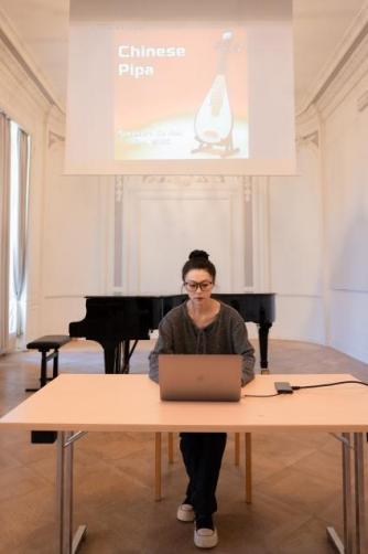 21日,三位教师通过开展中国乐器专题讲座,系统介绍了阮、琵琶、中国打击乐的发展历史、演奏技法与艺术特色。