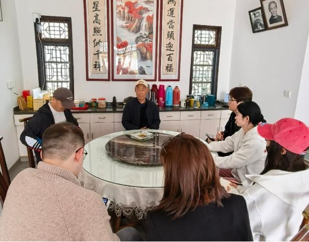 下午,由丁绪山主任带领师生前往池州市银杏人家采访罗城民歌传承人姜少林老师,并深入交流关于罗城民歌的起源、发展、特色。且通过现场观摩、交流探讨与素材采集,让同学们不仅积累了丰富的创作素材,更深刻体会到劳动与艺术创作的紧密联系。