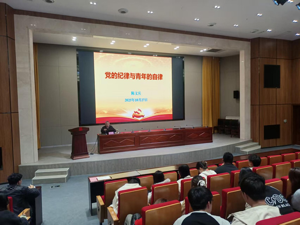陈文兵以党的纪律和青年的自律为主题讲授首场专题党课,勉励学员守底线、严修身,以自律筑初心,努力成长为可堪大用、能担重任的新时代栋梁之材,以实际行动争取早日入党。